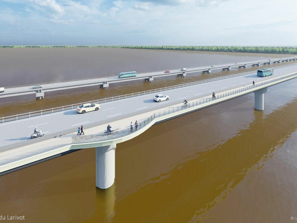 Le Pont du Larivot, situé en Guyane, joue un rôle crucial dans la liaison entre Cayenne et Kourou. À la suite de la fermeture temporaire de l’ancien pont, un nouveau pont est en construction pour améliorer la fluidité du trafic et éviter de futurs désagréments économiques et sociaux. Le projet inclut également une voie dédiée aux cyclistes et aux deux-roues, tandis que l'ancien pont servira uniquement au trafic en sens inverse, allant de Kourou vers Cayenne.